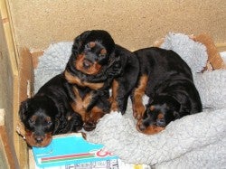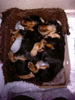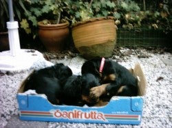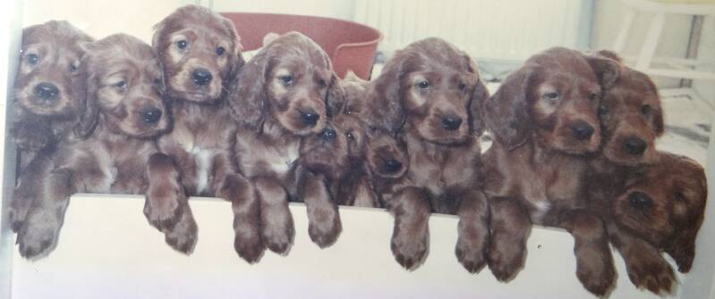 Ons nestje Ierse Setterpups, in de jaren 80.