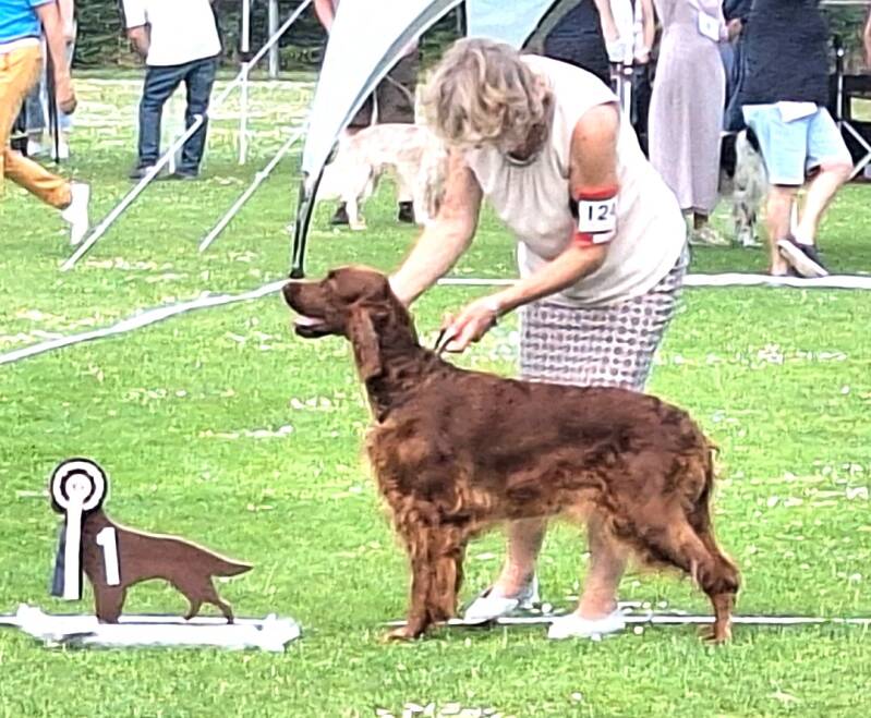 Op 29 juni 2025 werd op de Setter Clubmatch in Utrecht tot onze verrassing Rosa eerst 1 Uitmuntend in de Open Klas Teven Ierse Setters en daarna in de Erering Reserve Kampioen Ierse Setter Teven.